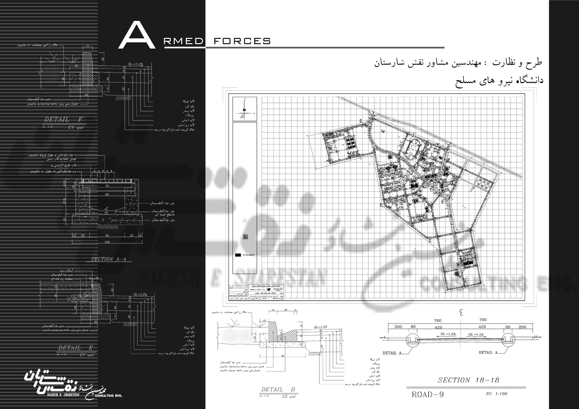 The design of the site has been affected by the rules of urban design, and the main, secondary, riding, pedestrian, squares, entrances, green spaces, etc. arteries have all been considered in accordance with urban design standards. Separation of carriage and pedestrian arteries and the existence of open parking lots in the main entrances, educational zones, research has turned into a quiet and accessible environment for training.