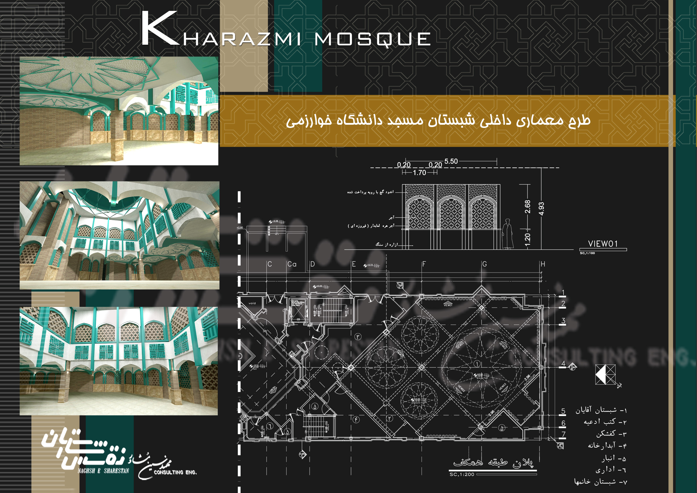 After the good experience of Ali Ibn Abitaleb Mosque, which took place between the municipality of District 7 and the consulting engineers of Naghsh Sharestan, the esteemed employer put the Kharazmi University mosque reform plan on the agenda of this consultant. Unfortunately, in the first and second phases of this project, safety issues and fire regulations and emergency exits were not seen, and the internal plan had major shortcomings in terms of accesses, exits, service spaces such as shoemaking, water house, etc. Attention to the rules of the esteemed employer was confirmed.