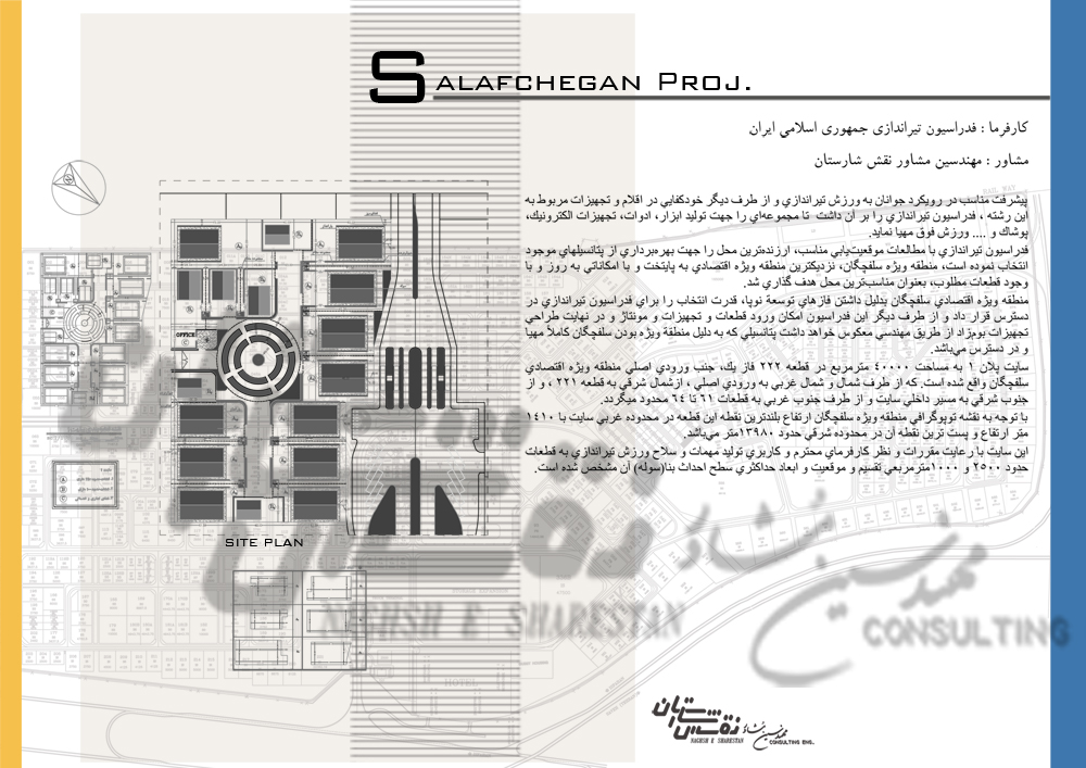 فدراسیون تیراندازی ایران به جهت بومی سازی و تولید لوازم و تجهیزات الکترونیکی سالنها و همچنین اسلحه های ورزشی و تفنگ و .... دو قطعه زمین را جهت طراحی کارخانه جات مربوطه به مهندسین مشاور نقش شارستان معرفی نمود و این مشاور طرح محوطه و جانمایی فضایی هر یک از کارخانجات تولیدی را در سایتهای یاد شده تهیه و به تأیید مراجع ذیربط رساند.