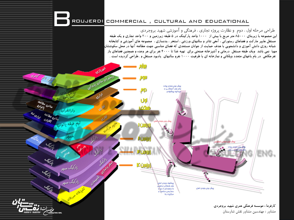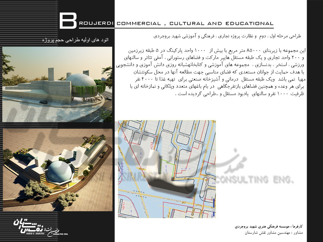 طراحی مرحله اول ، دوم و نظارت پروژه تجاری ، فرهنگی و آموزشی شهید بروجردی