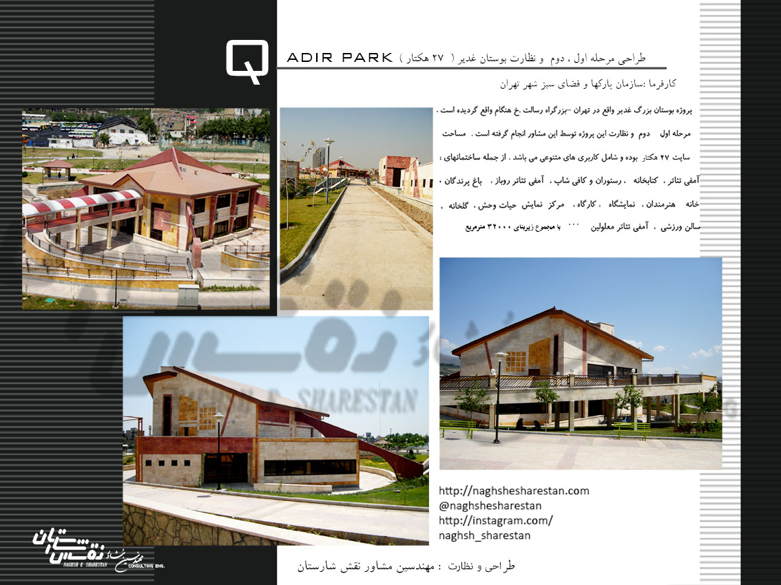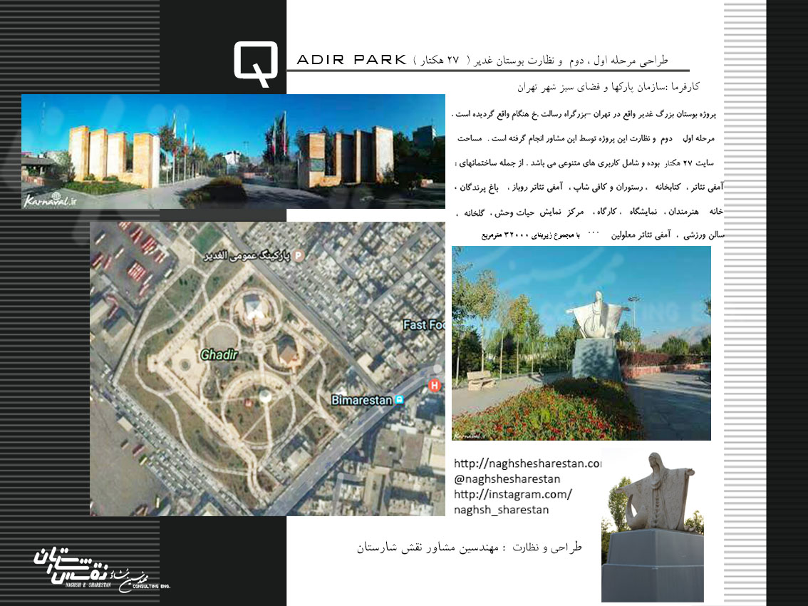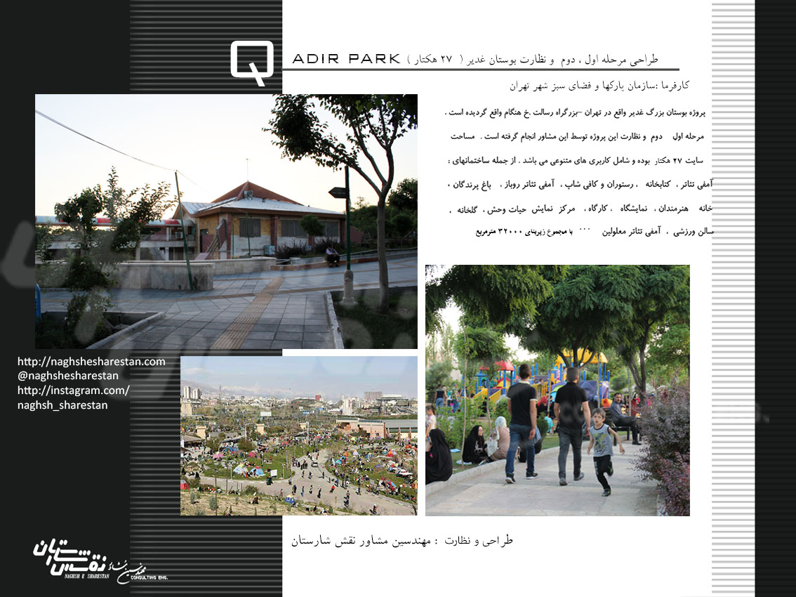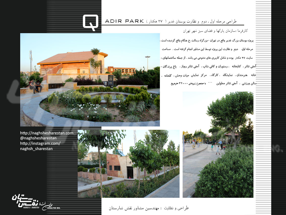 سازمان بوستانها و فضای سبز شهر تهران طراحی بوستان 27هکتاری غدیر را در محدوده منطقه 4 شهرداری تهران و در محل پارکینگ شرکت واحد و همجوار میدان الغدیر رسالت تهران به مهندسین مشاور نقش شارستان واگذار شد.