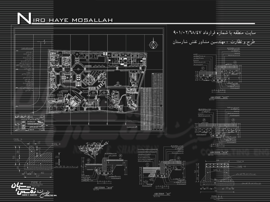 مهندسین مشاور نقش شارستان طراحی سایت و سیویل پروژه فوق را علاوه بر طراحی ساختمانهای آن بعهده داشته است . مساحت کل زمین حدود 42000 متر مربع و 28 ساختمان در آن جانمایی و طراحی گردیده است .سایت پروژه دارای اختلاف سطح است و در پاره ای از موارد تراسبندی شده است .