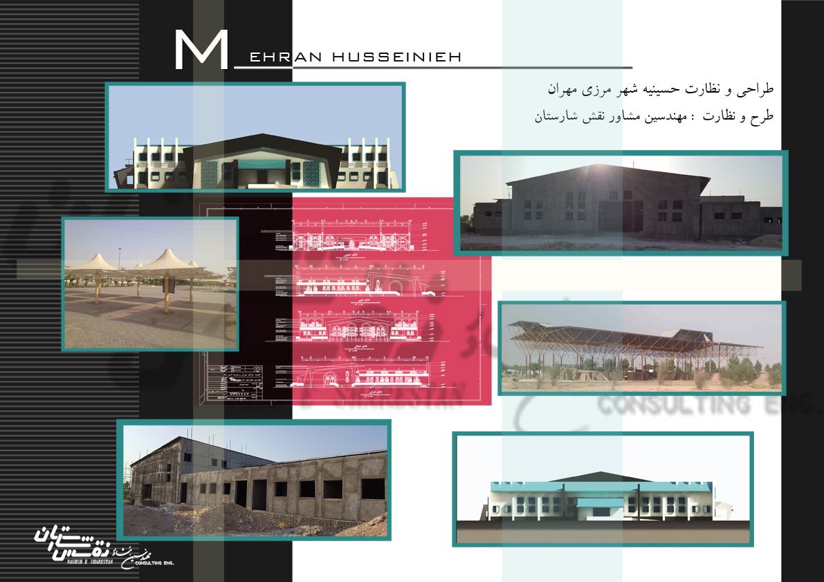 مهندسین مشاور نقش شارستان به کارفرمای شرکت امید زائر ( وابسته به سازمان حج و اوقاف ) مبادرت به طراحی حسینیه ای در شهر مرزی مهران برای سرویس دهی به زائران و مسافران حرم امام حسین و مراسم اربعین نموده است ، طرح به نحوی تهیه گردیده که حسینیه فوق قابلیت پذیرایی از زائرین و صرف غذا در فضای فوق را نیز داشته باشد و آشپزخانه صنعتی نیز برای حسینیه فوق در نظر گرفته شده است. حسینیه از دو سالن مجزای زنانه و مردانه برخوردار است و برای استراحت و اقامت چند ساعته و نیز فضاهایی مانند دوش و سرویس بهداشتی مناسب برخوردار است . حسینیه فوق دارای فضاهای جانبی مانند سوئیت اقامت متولی وامام جماعت و همچنین محل اقامت پرسنل آشپزخانه صنعتی می باشد . این حسینیه با سطح اشغال 2500 متر مربع و مجموع زیر بنای 3200 متر مربع واقع در شهر مرزی مهران طراحی شده در نمای این پروژه از رنگ های سفید و فیروزه ای جهت جلوه مذهبی بیشتر از قوسهای زیبای اسلیمی در طراحی پنجره ها استفاده شده است که بر زیبایی حجم و نمای ساختمان ، افزوده است .