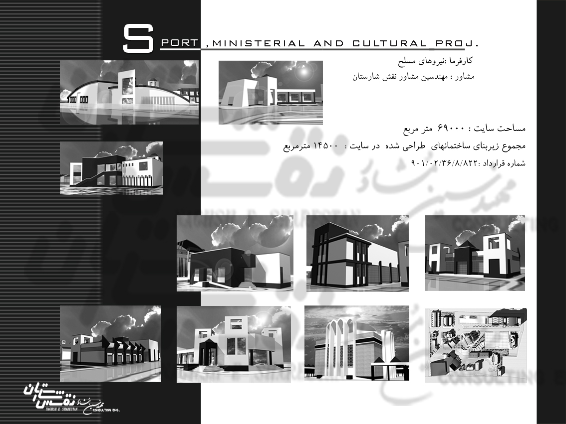 مساحت کل زمین حدود 42000 متر مربع می باشد و تعداد 28 ساختمان در این زمین طراحی شده است . مهندسین مشاور نقش شارستان در جهت پاسخگویی به نیاز مجموعه اداری ، فرهنگی ، ورزشی برای نیرو های مسلح طراحی سایت و ساختمانهای مد نظر کارفرمای محترم را در سال 79به عهده گرفت .